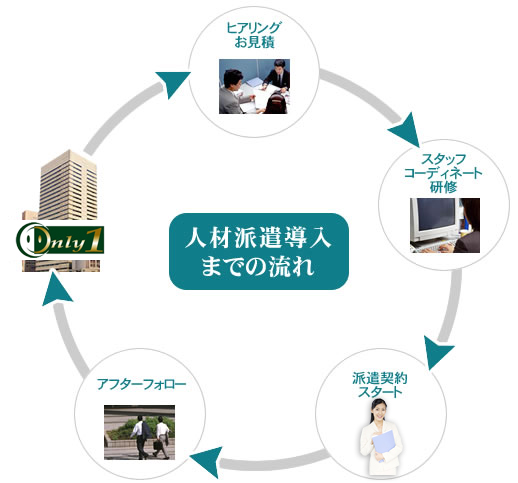 オンリーワンは、厚生労働大臣の許可、許可No(派)08-300017・(紹)08-ユ-300096を取得し、一般労働者派遣事業・職業紹介事業を行っております。事務・製造・推奨販売・営業・介護職・専門業務まで、幅広いニーズに対応し、最も適した人材を派遣する総合人材サービス会社です。